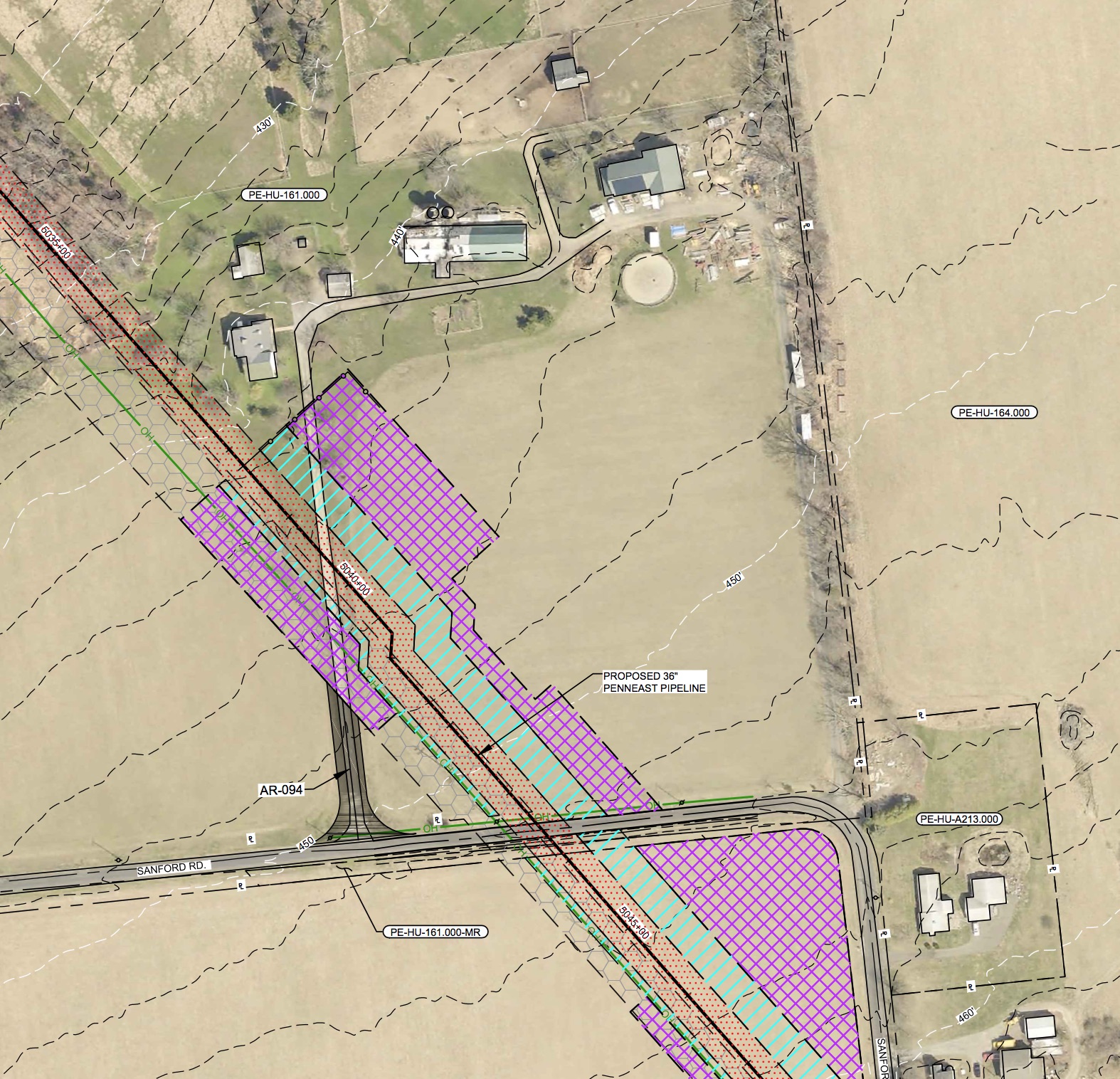 As you can see, they plan on using her driveway as a construction access road, and then staging the HDD site across her driveway and in her front yard. Here’s what it looks like in Google Earth: